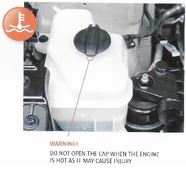 WARNING: Never open this container while the engine is hot as the fluid inside will be at boiling point and could cause serious injury.