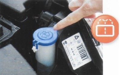 3) If when you activate the window washer from inside the car using the wiper lever and you find there is no spray coming out onto the window, you will need to top up this fluid.